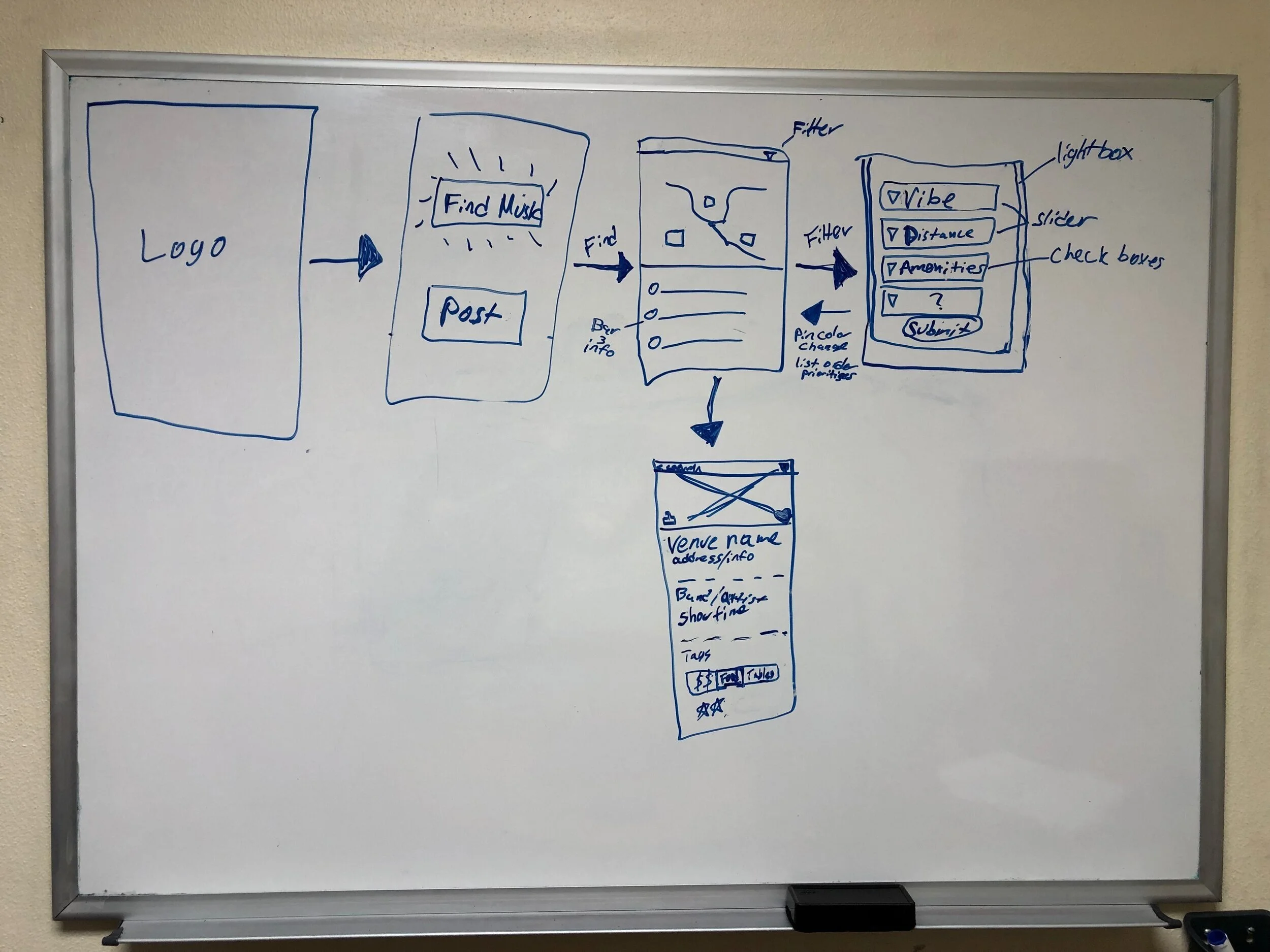 Though the secondary wireframe did not have to be as streamlined as the primary we thought it would be a good idea to keep it simple. We figured the one posting about events at a local bar would most likely be bar employees or managers that have other responsibilities. We knew we wanted to give the ability to the poster to add key words or other information they found relevant to the event.
